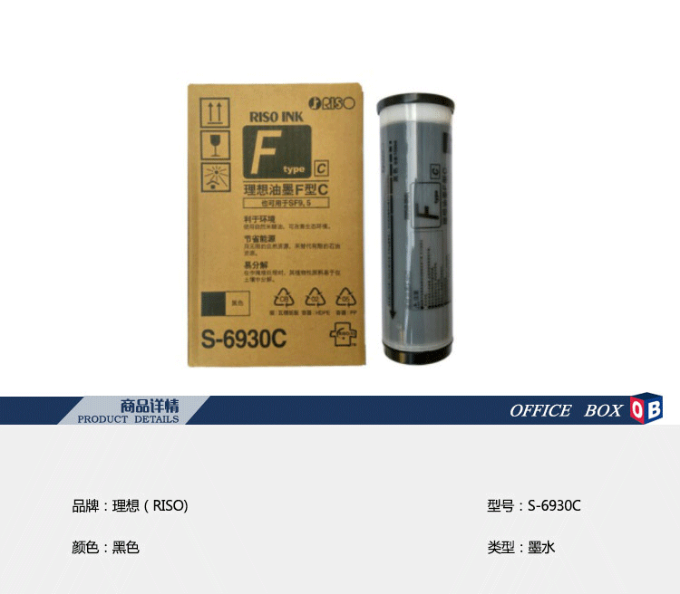 商品名稱:理想(RISO) S-6930C F型黑油墨(適用機型SF5231/SF5233/SF5234/SF5250C/SF5330/SF5351/SF5353/SF5354/SF9350) 黑色2000頁