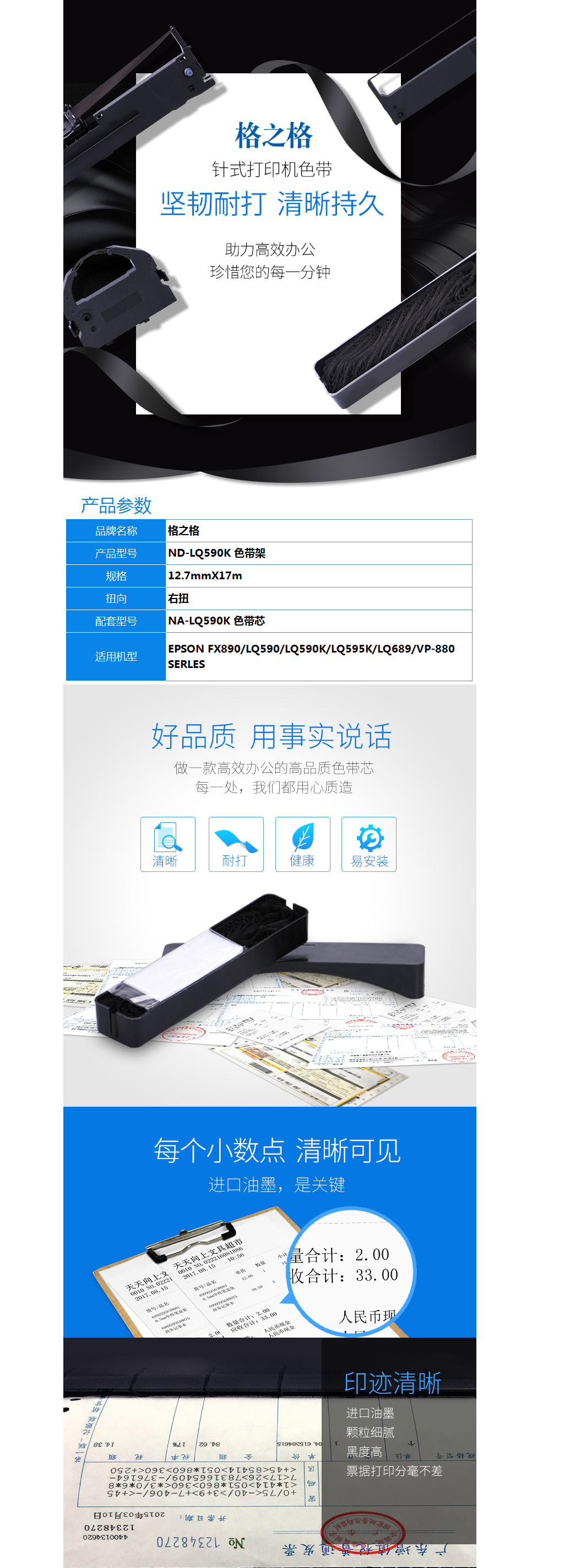 商品名稱:格之格 LQ590K色帶 適用愛普生FX890 LQ590 LQ595K LQ689 VP-880打印機(jī)色帶